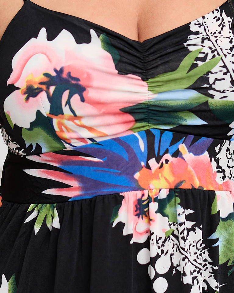 Põlveni ulatuv lilleline must kleit - Riietus
