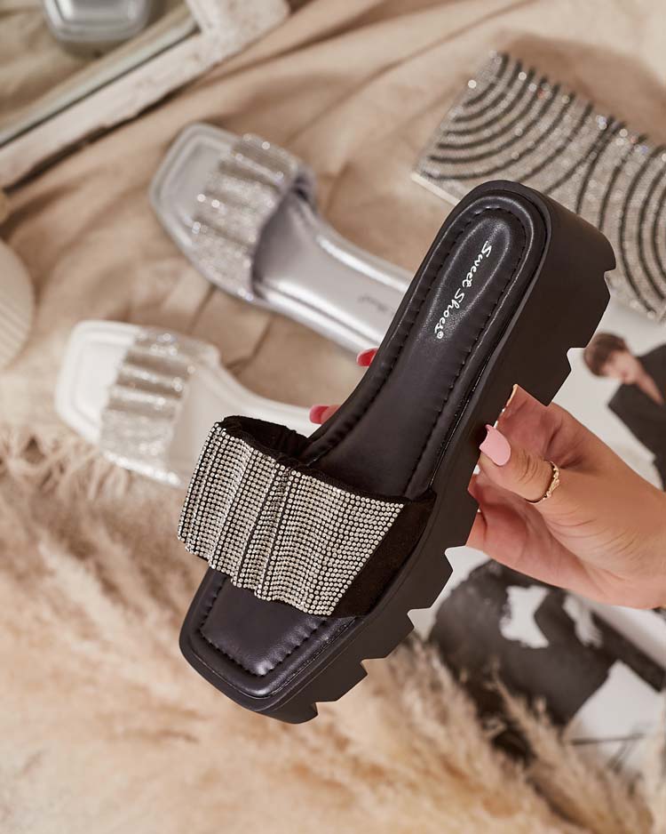 Mustad naiste tsirkooniumoksiidiga sussid Emkoy - Jalatsid