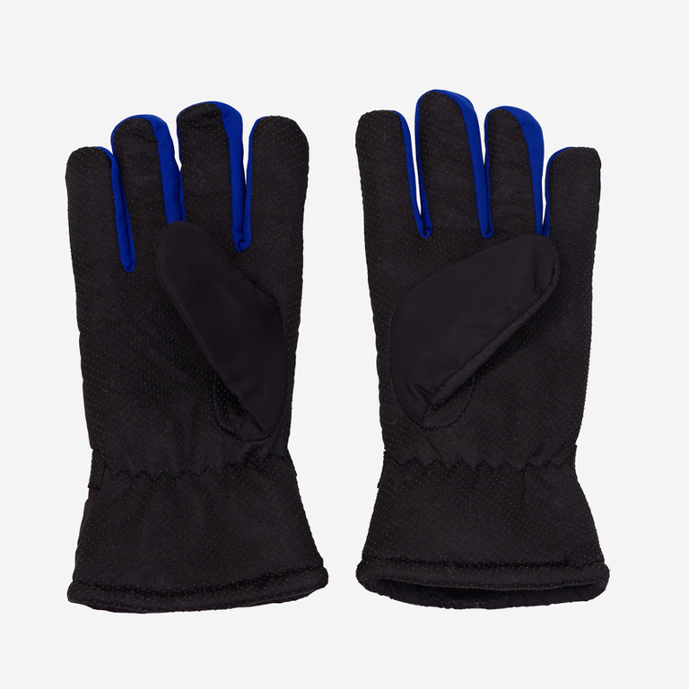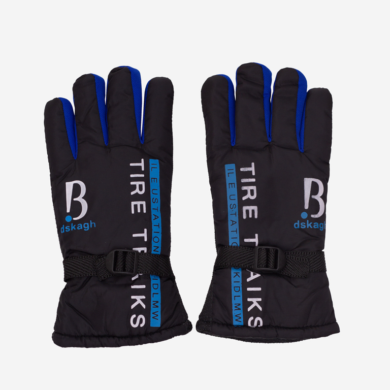 Mustad meeste isoleeritud kindad kirjadega ja koobalti värvi sisestustega - Aksessuaarid