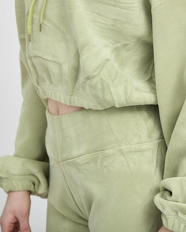- Naiste spordikomplekt: dressipluus ja püksid, a'la fleece materjalist. Leggings-tüüpi püksid elastse vöökohaga ja sääreosal, lühike dressipluus kapuutsiga ja pükstega ning veniva kummiga allääres. MÄRKUS: mõõtmistäpsus (+/-) 1 cm.