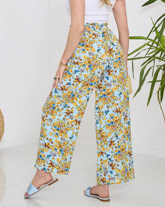 Naiste sinised palazzo püksid kollaste lilledega- Rõivad