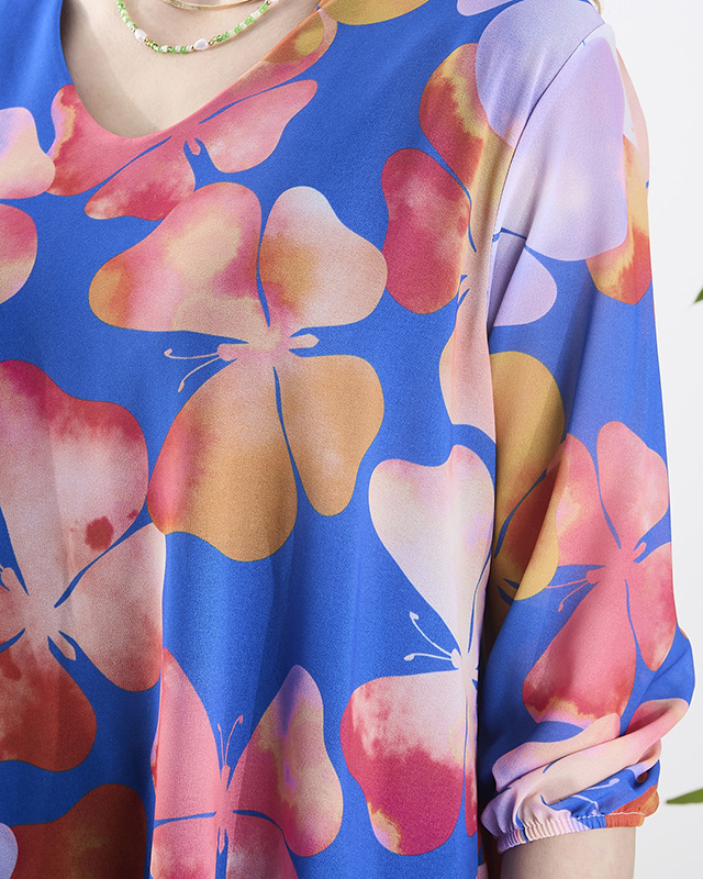 - Stiilne kleit, mis on lõdva oversize lõikega, 3/4 varrukatega, mis lõpevad kummipaelaga. Valmistusmaterjal - polüester. Kleidil on südamega dekoltee ja see on viimistletud rüüsiga. Põlveni ulatuv mudel, mis on kaunistatud trükiga. MÄRKUS: mõõtmistäpsus (+