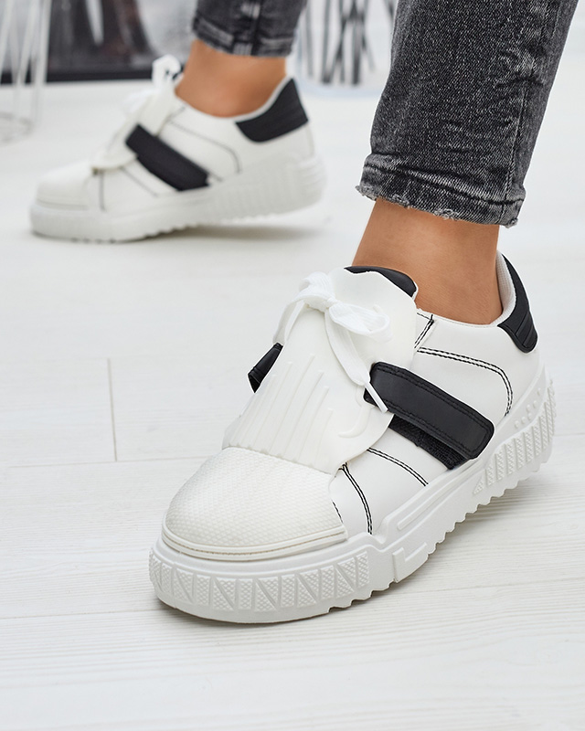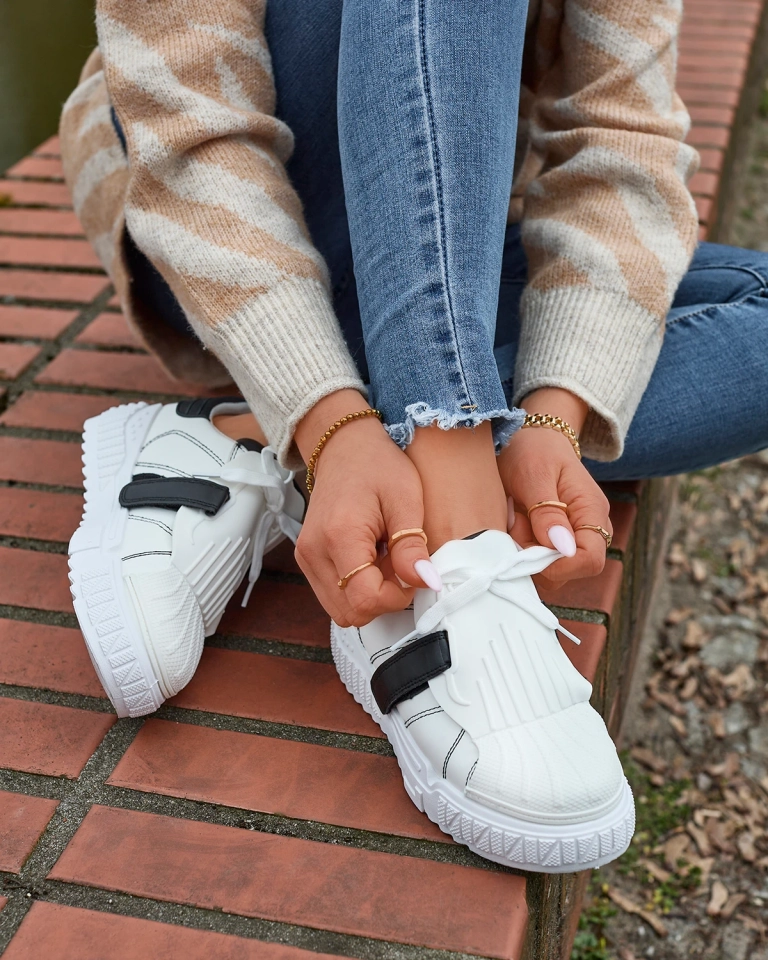 - Super moodsad naiste spordijalatsid, mis on valmistatud matist ökoloogilisest nahast. Toode on nööriga ning sellel on kummist ninats ja keel. Pealsel väljadel dekoratiivne Velcro kinnitus, keskel vooderdatud kangast materjaliga. Selle hooaja must have!