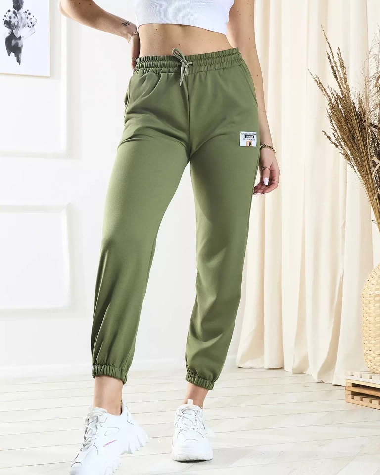 - Naiste dressipüksid, millel on 2 püksitaskut, elastne vöökoht ja sääreosa. Seotud püksid vöökohal, küljel dekoratiivne plaaster. Püksid saadaval mitmes värvivariandis. MÄRKUS: mõõtmistäpsus (+/-) 1 cm.