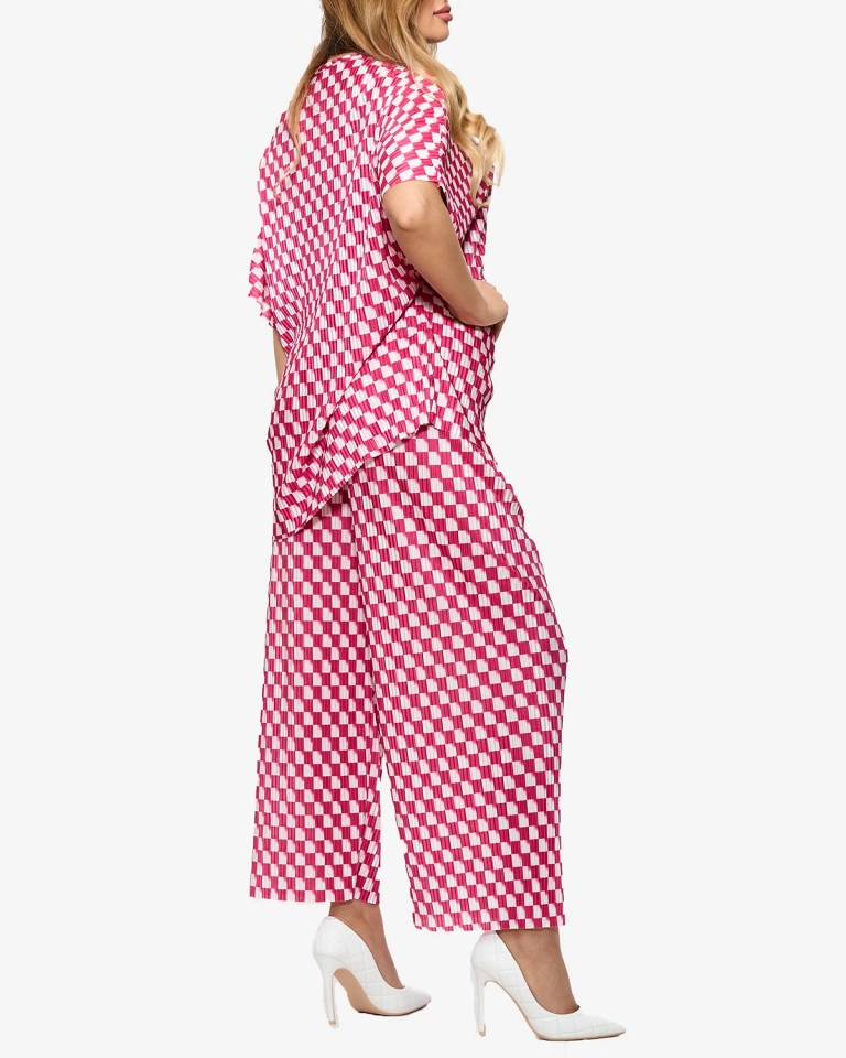 Fuksiat värvi naiste plisseeritud mustriline komplekt - Rõivad