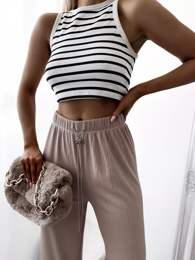 - Kerged naiste laiad püksid, mis on valmistatud soonikmaterjalist. Tootel on elastne vöökoht ja püksid, mis rõhutavad suurepäraselt vöökohta. Selle hooaja must have! MÄRKUS: mõõtmistäpsus (+/-) 1 cm.