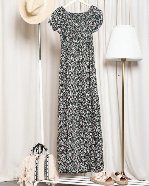 • Kaunis naiste lilleline midi-pikk kleit. Lühikeste varrukatega mudelil on lai kummipael rinnal. Toode on valmistatud kergest puuvillasest polüesterkangast. Suveks hädavajalik! MÄRKUS: Mõõtmistäpsus (+/-) 1 cm