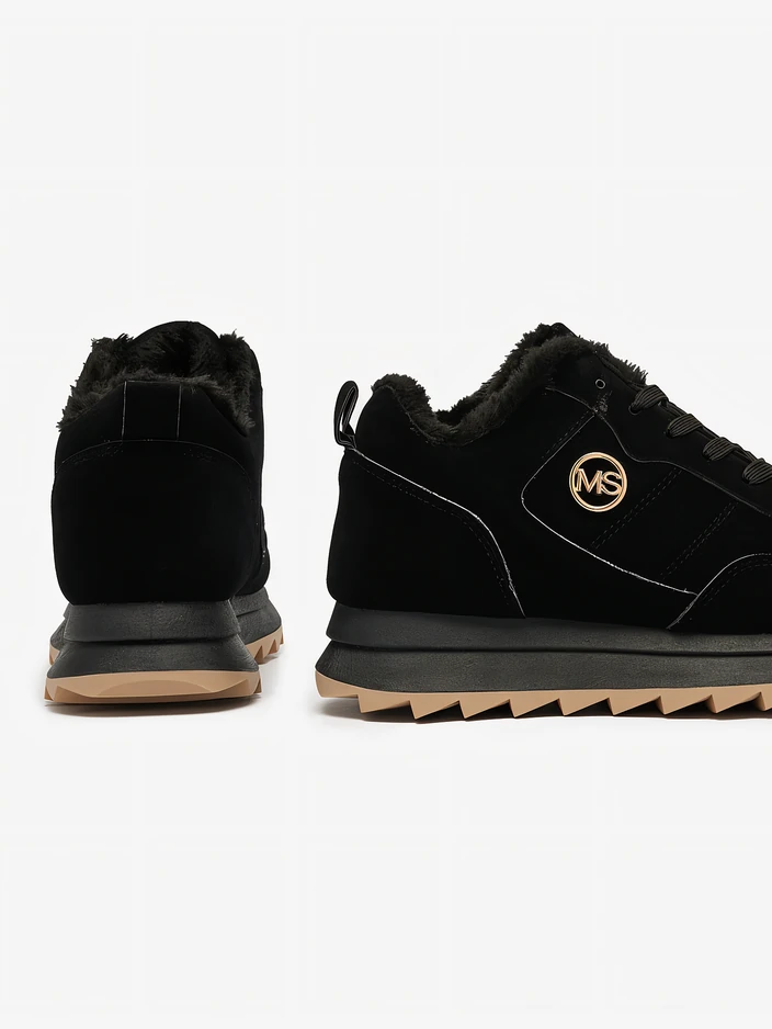 - Naiste soojad sportlikud kingad paksema tallaga. Paeltega pealispind on valmistatud ökoloogilisest nubukist. Sees on pehme karvkate. Suurepärane lisa sinu talvistele vabaaja stiilis rõivastele!