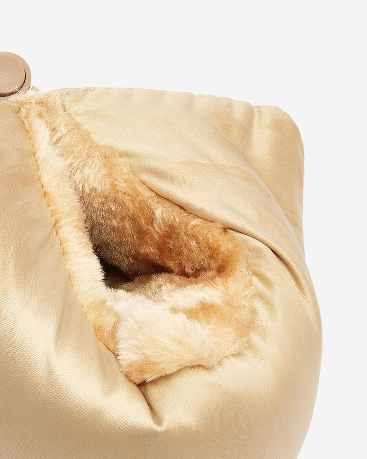 - Naiste lumesaapad, mille pealne on a'la cerata materjalist. Soojustatud seestpoolt karusnahast, liibuvad jalanõud ja on ääristatud. Ideaalsed külmemaks hooajaks!