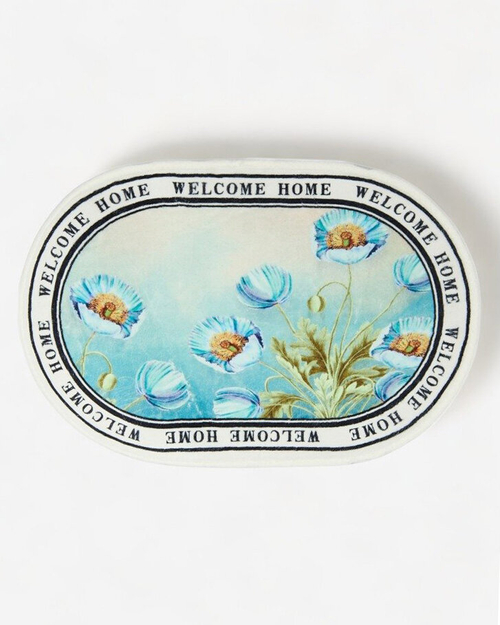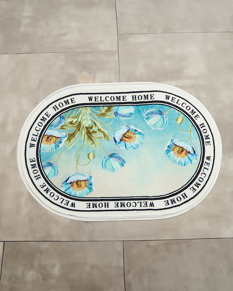 • Väike värviline lühikese vaibaga uksevaip, millel on kiri "Tere tulemast koju". See on pehme ja õrn, mis muudab selle äärmiselt meeldivaks katsumiseks. Täiendavaks eeliseks on vaiba libisemisvastane alumine külg.