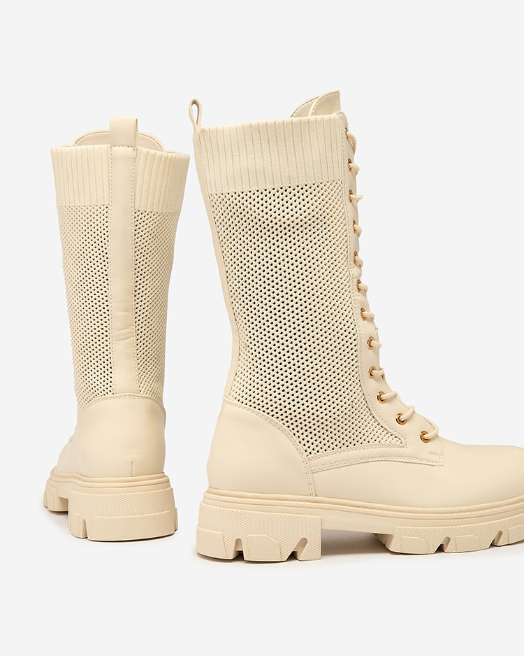 Royalfashion Naiste kreemjas aplastikust pitssaapad Buhomias