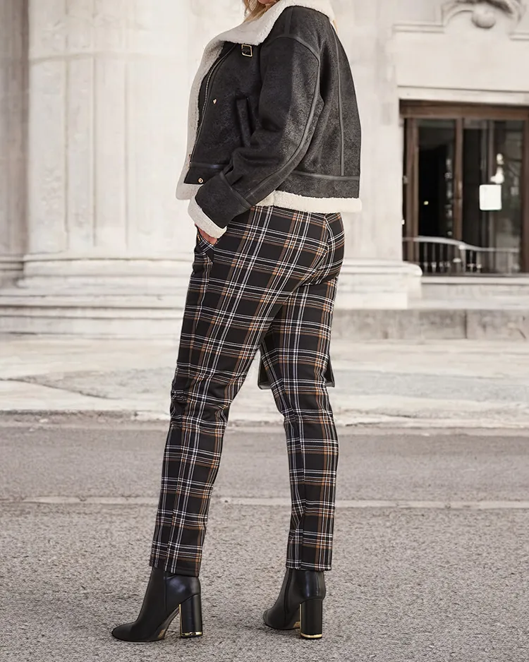 • Naiste teggings püksid, mis on valmistatud stretch-kangast. Mudelil on lai elastne vöökoht ja 2 liibuvat taskut. Toode on soojustatud paksu karusnahaga ja kaunistatud ruudulise mustriga. Selle hooaja hitt!