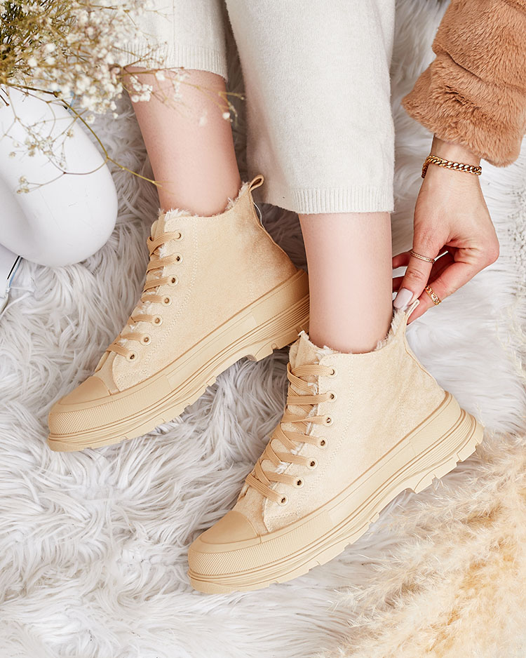 • Unikaalsed naiste kõrged spordijalatsid a'la tossud. Pitsitatav pealne on valmistatud ökoloogilisest mokkanahast, keskosa on soojustatud pehme karusnahaga. Soliidselt valmistatud ja väga mugav tänu pehmele kummist tallale!