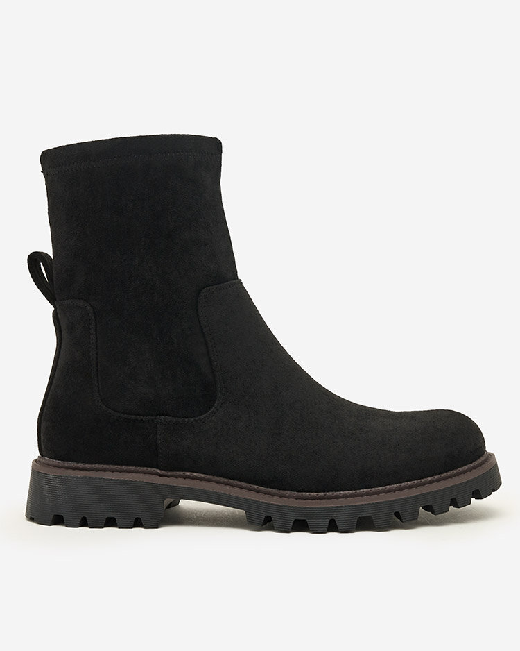 - Mega stiilsed, klassikalised naiste lamedakandilised saapad. Pealne on valmistatud öko-suede nahast. Jalatsitel on karusnahast sisetald. Slip-on mudel. Suurepärane valik sügiseks!