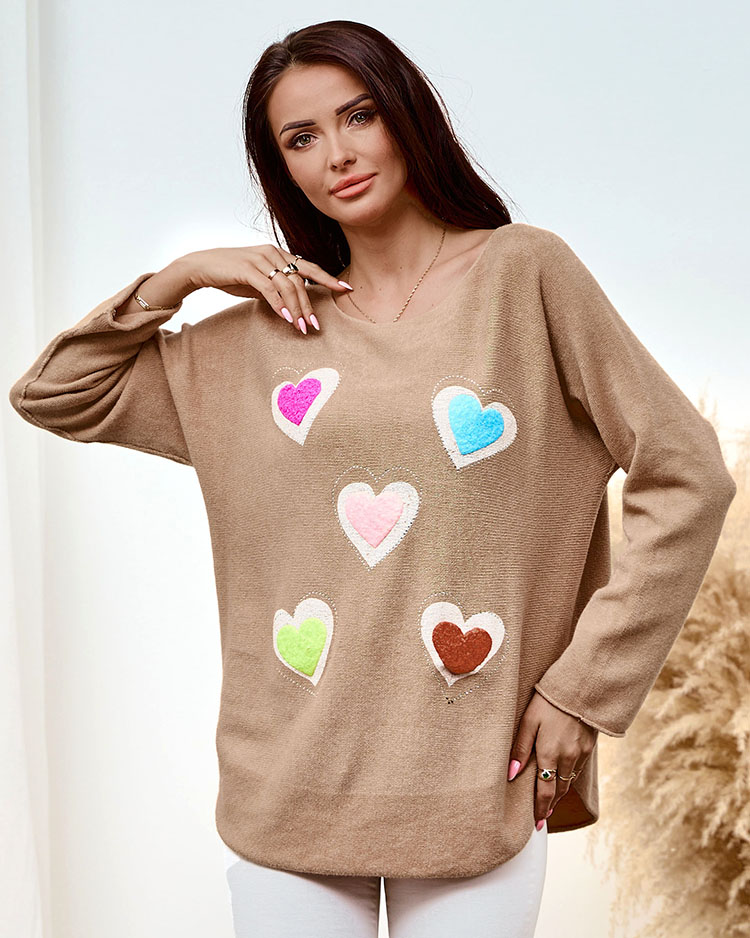 • Naiste meeldivast kangast südamega kampsun. Mudelil on pikad varrukad ja südamekujulised plaastrid. Ideaalne alus talviseks riietuseks!