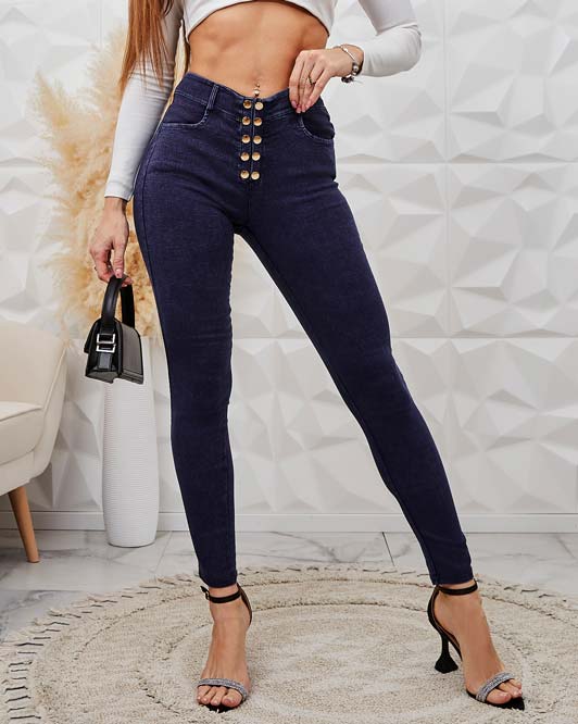 Royalfashion Naiste teggings püksid dekoratiivsete nööpidega