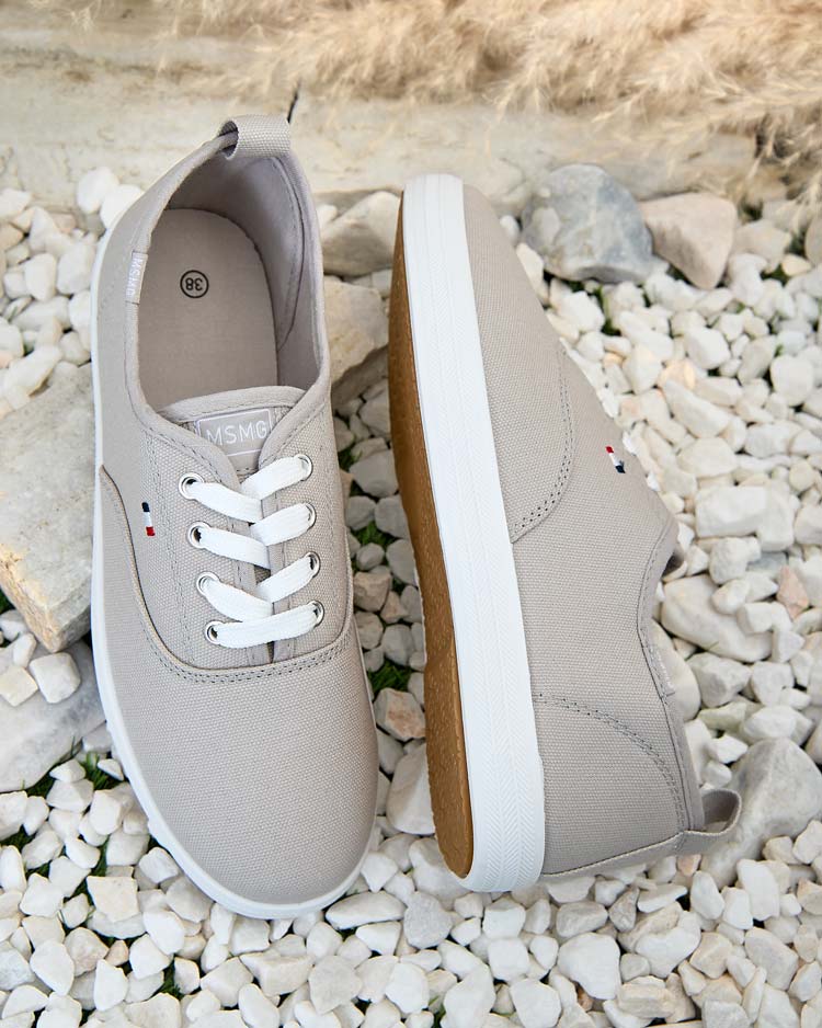 - Kerged naiste spordijalatsid lamedal tallal. Kangast pitsiga ülemine osa. Sisemine sisetald valmistatud kangast materjalist. Sobivad suurepäraselt suvistele jalutuskäikudele!