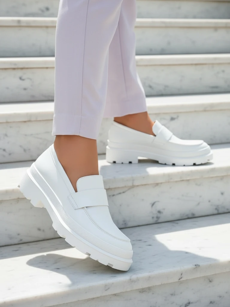 Aura Valged Naiste Mokassiinid Platvormil - Elegantsed ja Mugavad, Öko Nahk