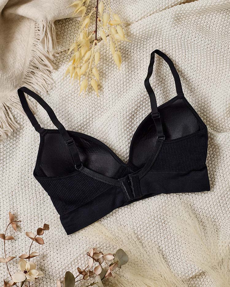 - Elastsest, soonikriibulisest materjalist tugevdatud naiste rinnahoidja. Reguleeritavate rihmadega ja eemaldamatute sisestustega mudel, mis on altpoolt lõpetatud elastse lõngaga. Sobib ideaalselt kehale.