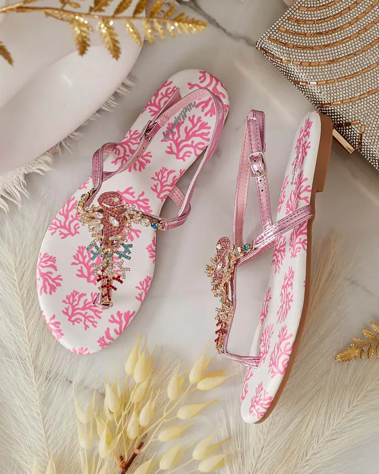 • Moekad lamedad naiste flip flop sandaalid, mis on valmistatud täielikult ökonahast. Kinnitatakse lukkudega, millel on peensust lisavad lukkude kaunistused. Ideaalsed suvistele jalutuskäikudele ja erilistele sündmustele!