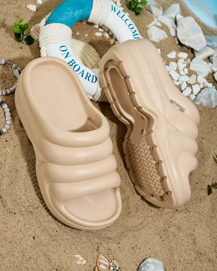 - Kaunid naiste kummist flip-flops paksema tallaga. Mudelil on üldine asümmeetriline kuju, mis lisab neile stiili. Ideaalne valik nii koju, aeda kui ka puhkusele!