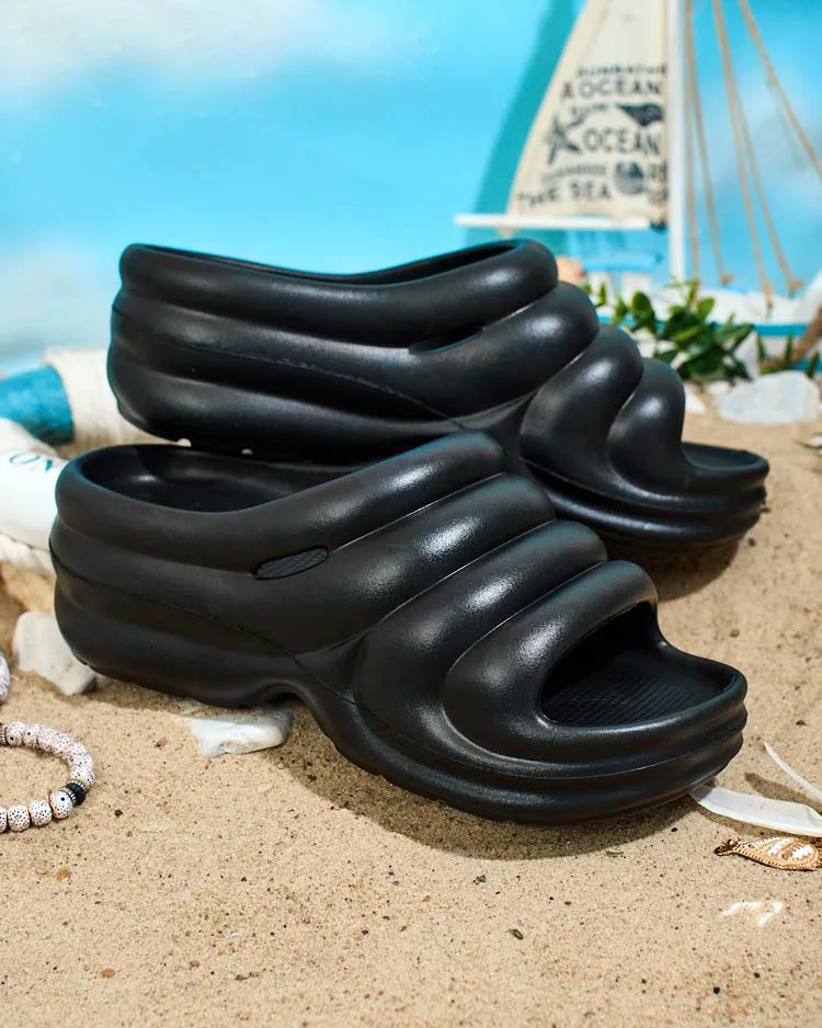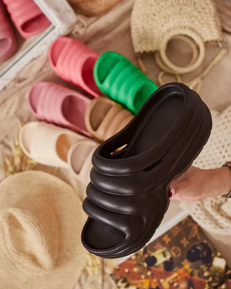 - Kaunid naiste kummist flip-flops paksema tallaga. Mudelil on üldine asümmeetriline kuju, mis lisab neile stiili. Ideaalne valik nii koju, aeda kui ka puhkusele!