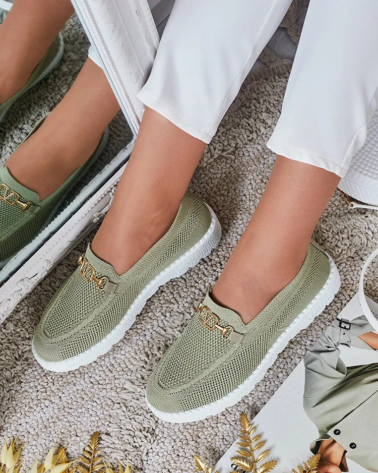 - Mugavad naiste mokassiinid sportliku šiki stiilis. Pealne on valmistatud kangast materjalist, sisetald on samuti kangast. Nina on kaunistatud tsirkoonidega kuldse metallist kaunistusega. Need on suurepärased kaunistused igapäevaseks stiiliks.