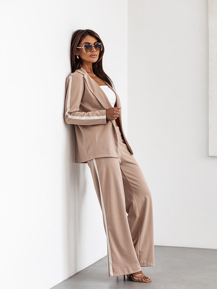 • Originaalne naiste komplekt, mis on valmistatud meeldivast kangast. Pikkade varrukatega ilma kapuutsita dressipluus, tõmblukuga. Laiad püksid elastse vöökohaga ja 2 taskuga. Kogu riietus on kaunistatud lampidega. Elegantsus ja stiil ühes!