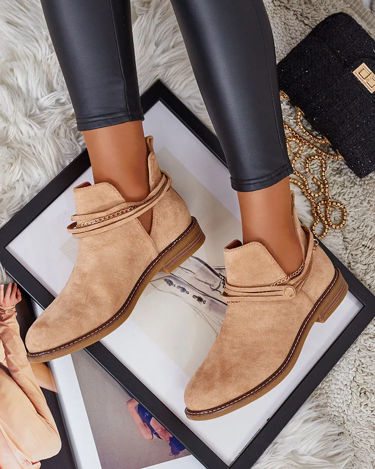 • Stiilsed naturaalse nahast sisetallaga naiste öko-suedist saapad sobivad ideaalselt külmemateks päevadeks. Slip-on mudel, mille pealsel on dekoratiivsed ketid. Jalatsid lamedal kannal ja ümmarguse varvaga. Super täiendus sinu vabaaja riietusele!