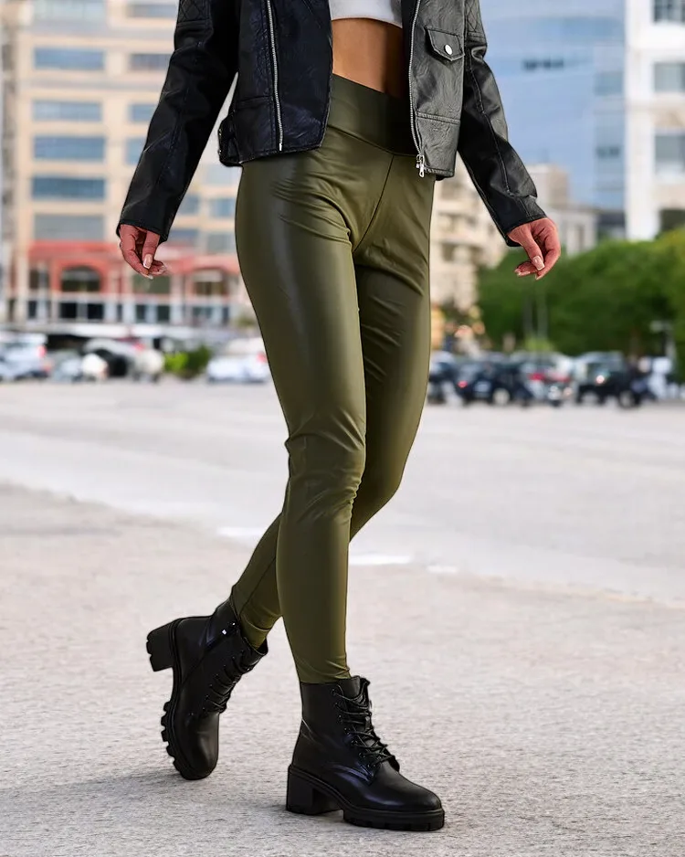 - Klassikalised säärised libedast kangast a'la nahk. Pükstel on kõrge vöökoht ja lai elastne vöökoht. Ideaalne alus stiilsete riiete jaoks! MÄRKUS: mõõtmistäpsus (+/-) 1 cm.