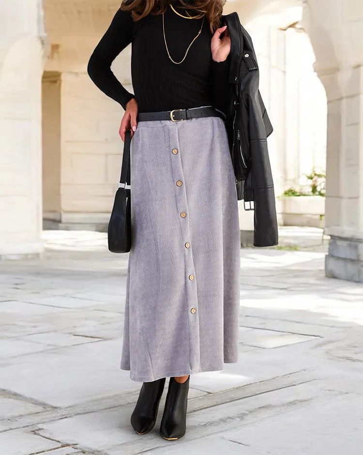 Royalfashion Naiste midi seelik dekoratiivsete nööpidega