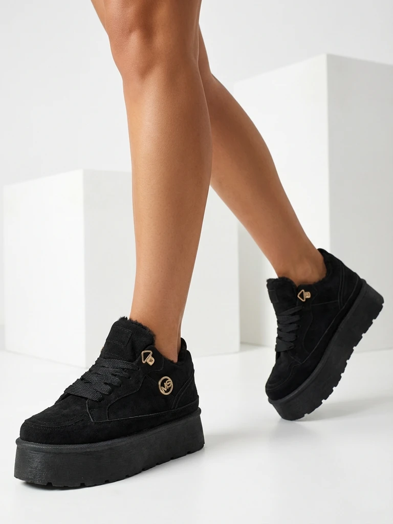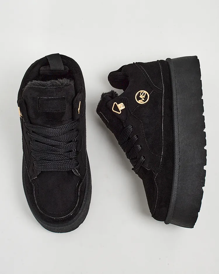 • Naiste sportlikud platvormkingad. Pitsiga ülemine osa, valmistatud ökoloogilisest nahast. Sisemine täielikult soojustatud karusnahaga. Sobivad ideaalselt sportlikuks riietuseks!