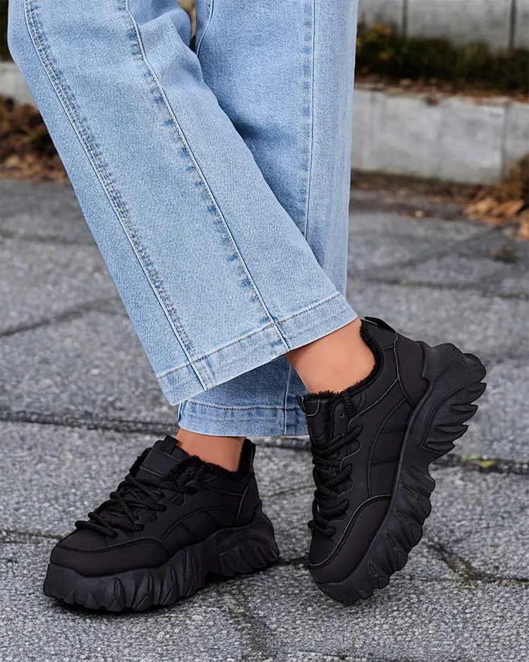 - Naiste paksema tallaga soojustatud tossutüüpi spordijalatsid. Pitsiga ülemine osa on valmistatud matt ökonahast. Pehme karusnahk seestpoolt. Super täiendus sinu talvistele vabaajarõivastele!