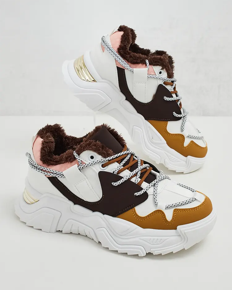 - Naiste sportlikud tossud paksema tallaga. Pitsiga ülemine osa, valmistatud ökoloogilisest nahast. Sisemine täielikult soojustatud karusnahaga. Ideaalsed sportlikuks riietuseks!