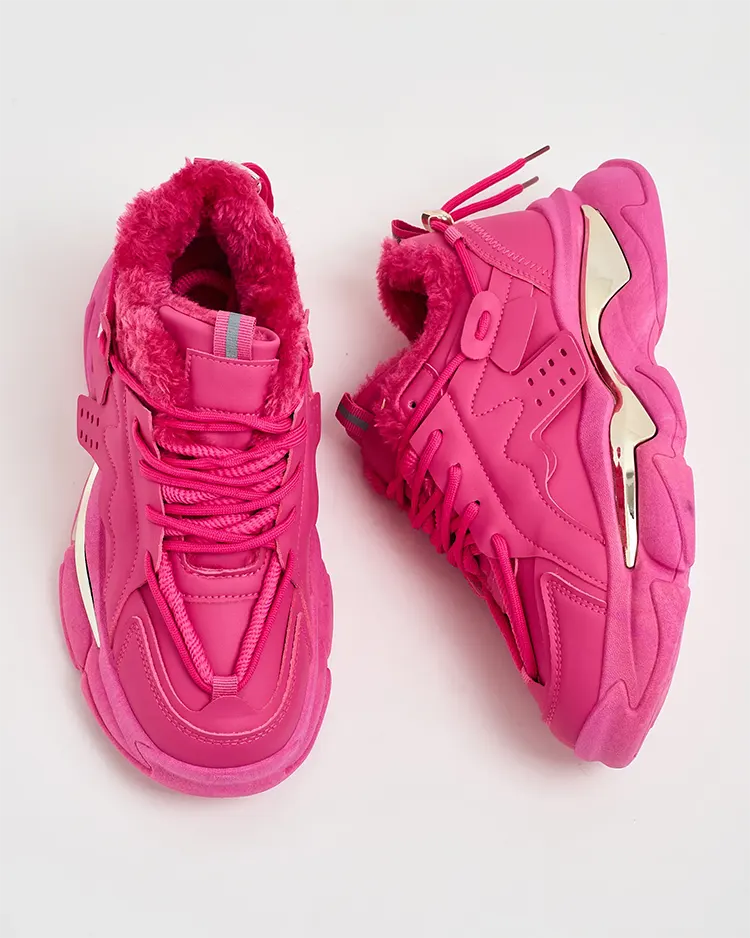 • Naiste sportlikud tennised paksema tallaga. Pitsiga ülemine osa, valmistatud ökoloogilisest nahast. Sisemus täielikult soojustatud karusnahaga. Ideaalne spordiriietus!