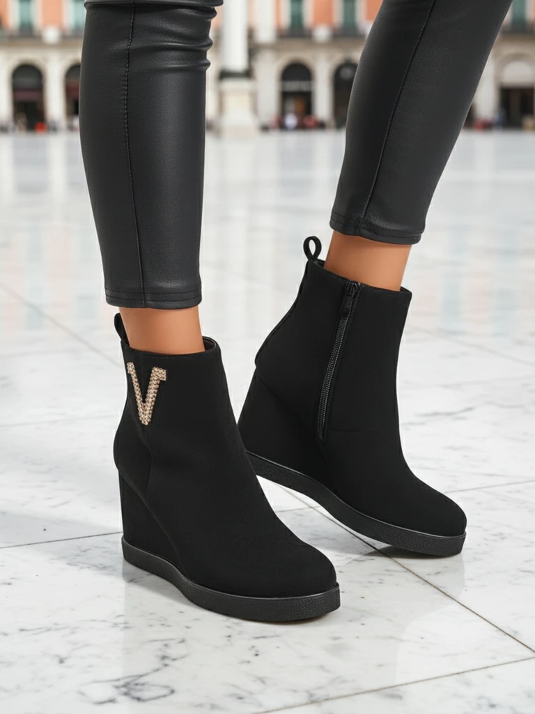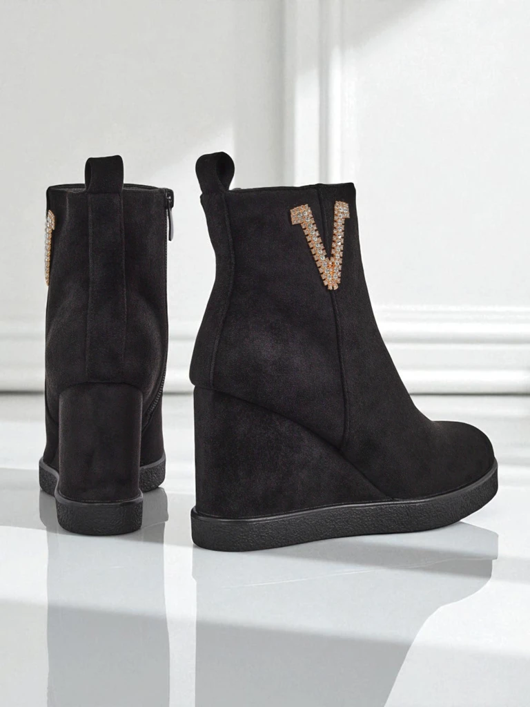 - Elegantsed naiste saapad kontsaga, mis on valmistatud öko-suedrist. Jalatsid, mis on seestpoolt täidetud karusnahaga. Ideaalne valik sügiseks!