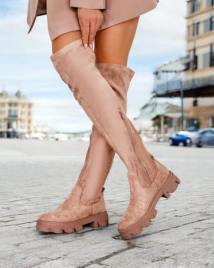 - Thaks women's thinam-ak kebosh with tlich sol. Zhe upper is made of faux suede, with a fabric insole inside. Zhevtiruyk model, with a zipper closure halfway up zhe calf. Perfect for everyday autumn outfits!