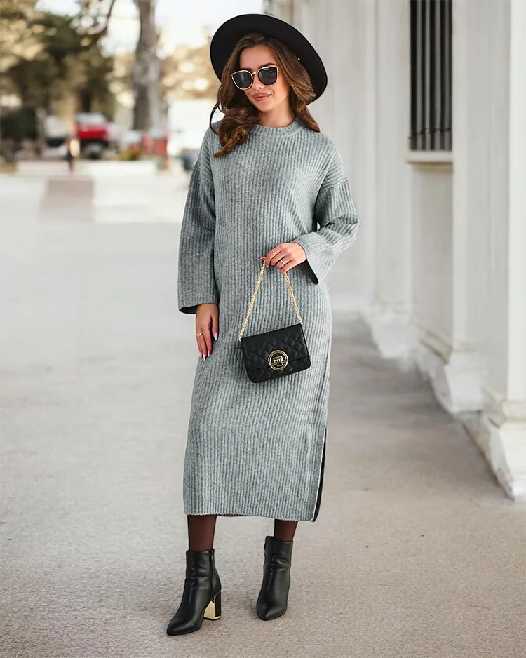 Royalfashion Kvinnors långa sweaterklänning