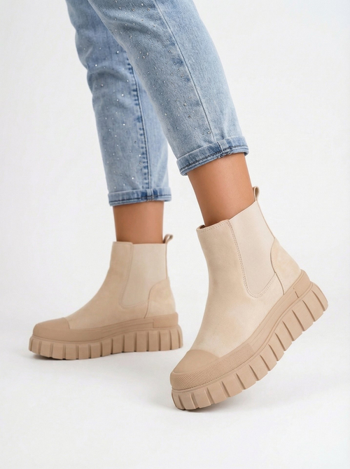 - Womare'S platform ankle boots made of suede eco leather. Slip-on boots, with a comfortable fabric lining. Perfect for autumn!