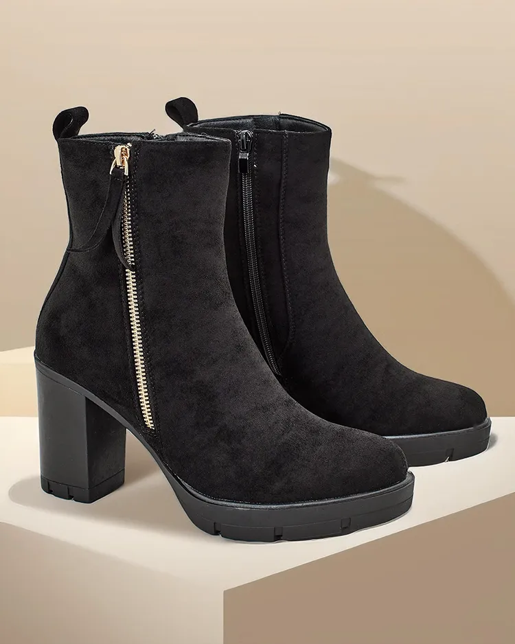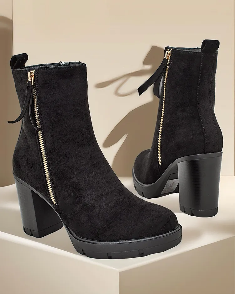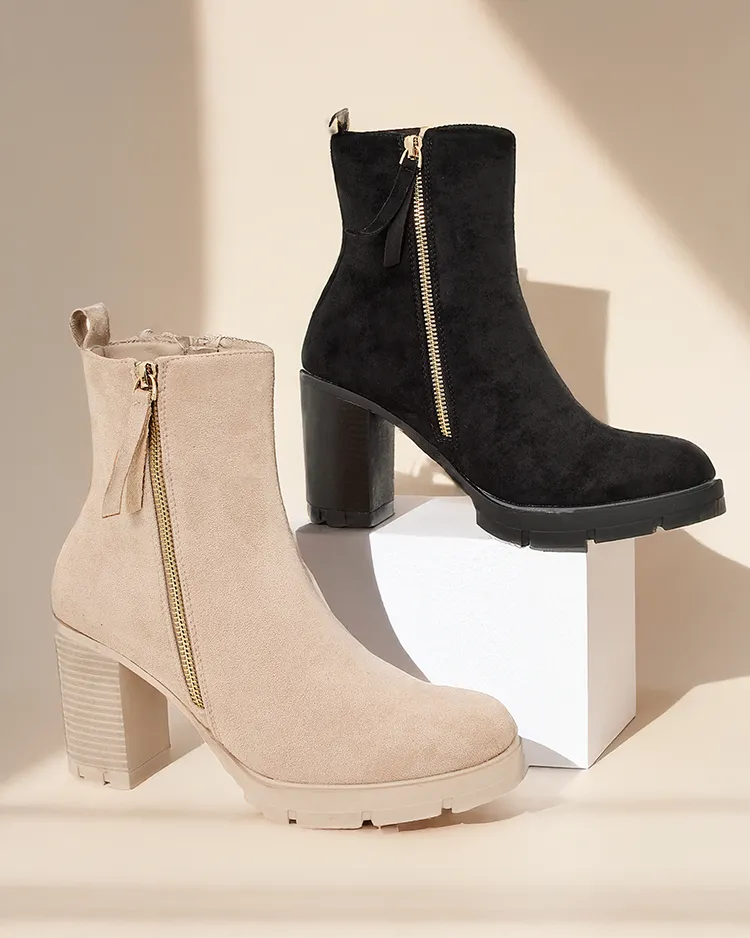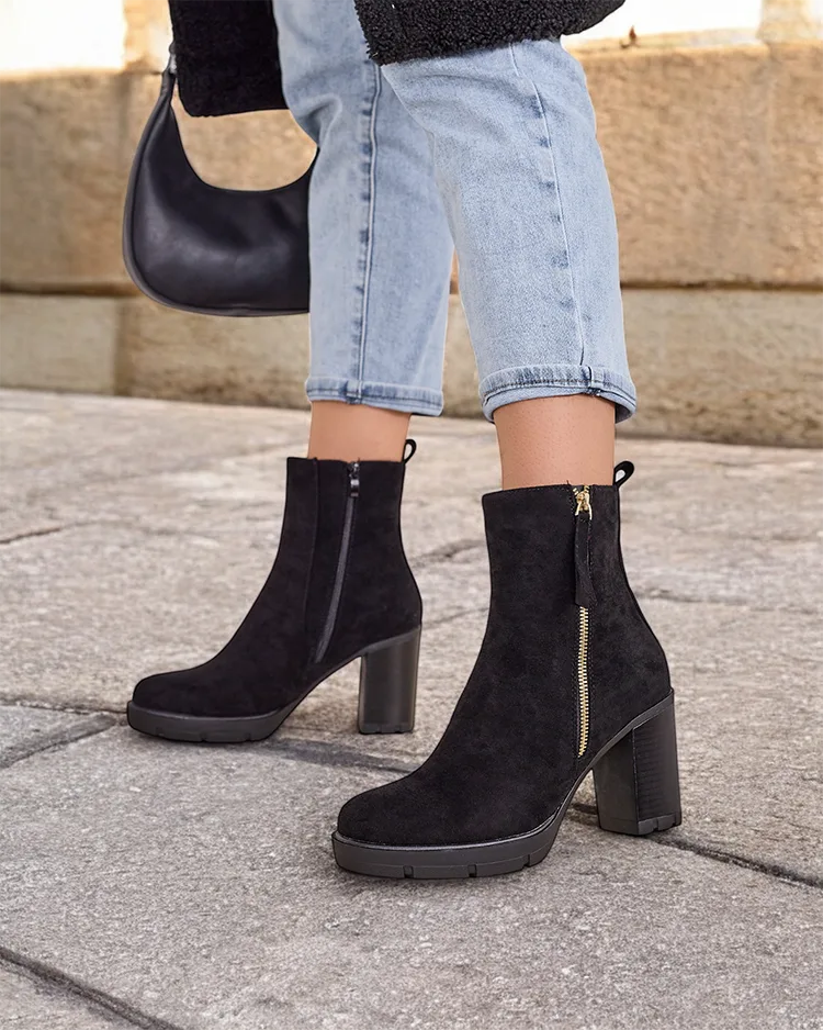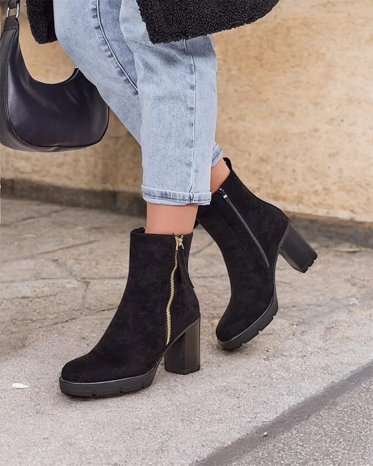 - Snyrtilegir kvennaanklestær sont perfekt lögsögn fyrir kaldari daga. Efri hlutinn er festur með rennilás og innan í er kújavaður. Mynd á stólpi, með kringlóttum tá. Frábær viðbót við afslappaða fötin þín!