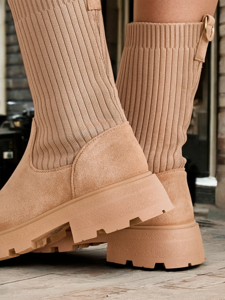 - Fabelaktige kvinners slip-on støvler med flat hæl, laget av imitert semsket og stoff. Stoffinteriøret garanterer komfort og varme selv på kaldere dager. Elastiske innlegg på sidene sikrer en perfekt passform!