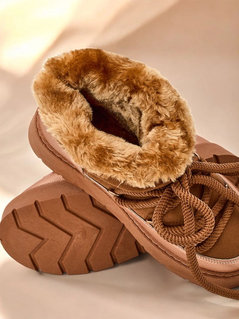• Women's snow boots with a shaft made of a combination of eco leather and eco suede. Inside pleasant fur, slip-on and lace-up footwear. Perfect for winter!