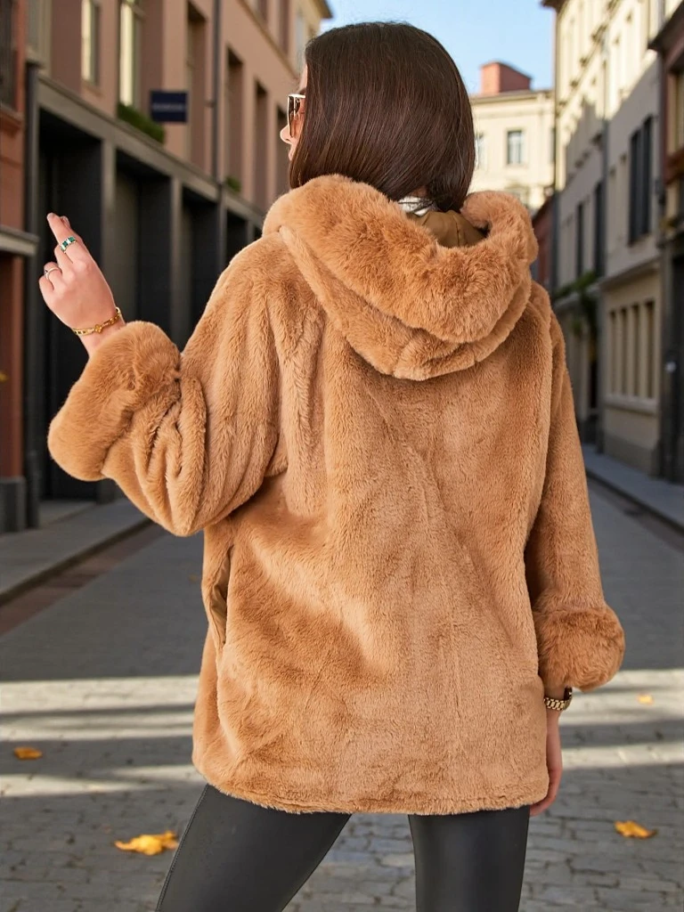- Undarligur kvinnu jakki gjørdur av deiliga, mjúkum faux fur-líkum materia. Modellin hevur eina hettu, 2 vøddar, og er rættiligaður. Hit í hesum árinum!