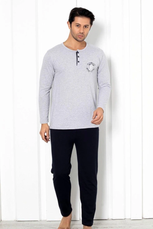 - Hämmastav meeste pajama, mis on valmistatud puuvillakangast. Mudelil on pikad varrukad ja sirged sääred. Mugavus ja elegants ühes!