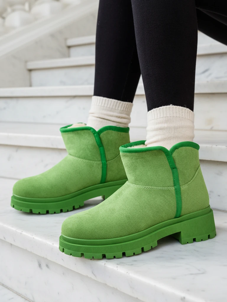 - Suured naiste talvised lumesaapad madalal tallal. Ülemine osa on valmistatud kunstlikust suededest ja sisemus on vooderdatud sooja karvaga. Ideaalne alus talvel!
