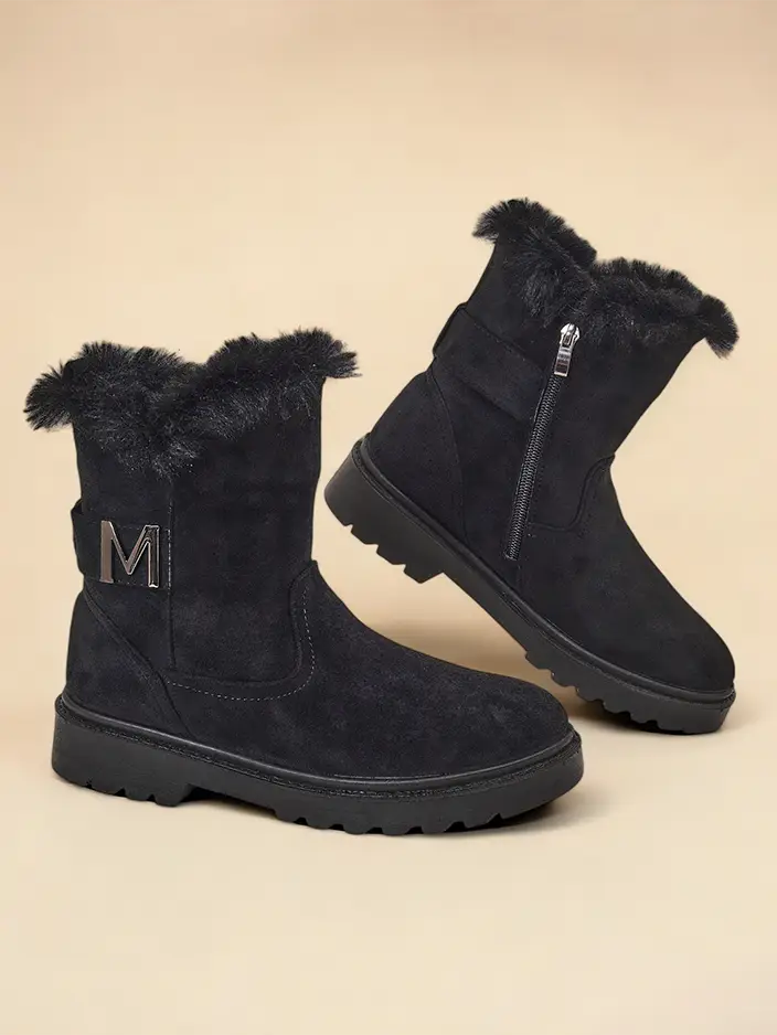 - Suurepärased naiste talvesaapad lumesaabaste stiilis lameda kannaga. Pealismaterjal on valmistatud keskkonnasõbralikust seemisnahast ning sisemus on karvaga vooderdatud. Jalanõud kinnitatakse tõmblukuga. Täiuslik alus talveks!