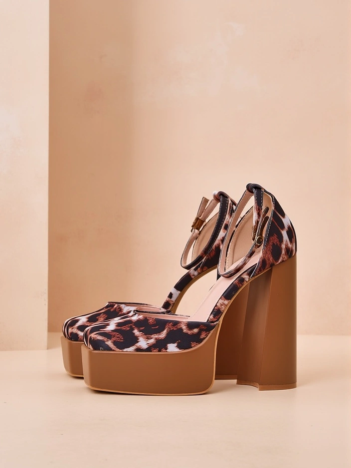 - Stilised naiste kontsakingad kõrge ploki kontsaga ja platvormiga. Ülaserv on valmistatud satiini meenutavast kangast ning vooder on ökoloogilisest nahast. Mudelil on pahkluu ümber olev rihm, mis on kinnitatud pannaliga.
