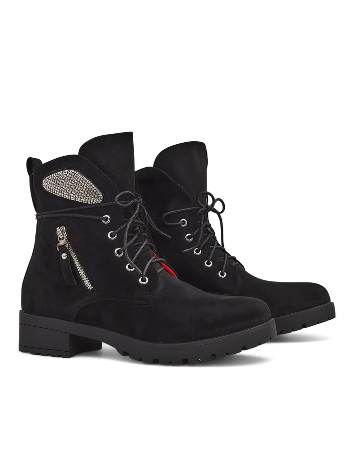 - Naiste töökingad on erakordsed jalatsid, mis ühendavad stiili ja mugavuse. Valmistatud ökoloogilisest nahast ja vooderdatud pehme fliisiga. Mudel on paeltega ja varustatud tõmblukuga. Jalatsitel on peened kaunistused.