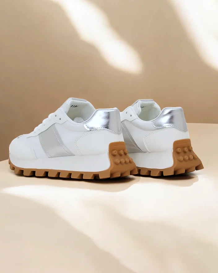 - Naistre spordijalatsid lapikute talladega, valmistatud läikivast ökokoest, ökounbuckist ja kangaselementidest, on stiili ja mugavuse ideaalne segu. Mudelil on kangast sisetald. Ideaalne aktiivsetele inimestele!
