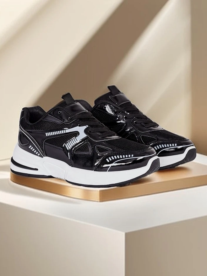 - Naiste spordijalatsid sneaker stiilis, lapik talla. Valmistatud patendiga kunstnahast koos kangas sisetükkidega. Sisetald valmistatud kangast. Suurepärane täiendus igapäevasele lihtsale riietusele!